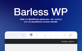 Barless WP: WordPress Admin Bar Toggle es una extensión para Chrome que permite ocultar o restaurar la barra de administración de WordPress con un solo clic. Esta herramienta es especialmente útil para aquellos que desean una experiencia de navegación más limpia al trabajar en su sitio. La extensión recuerda el estado oculto de la barra por cada origen de sitio, lo que facilita su uso en múltiples sesiones sin necesidad de reconfigurarla.